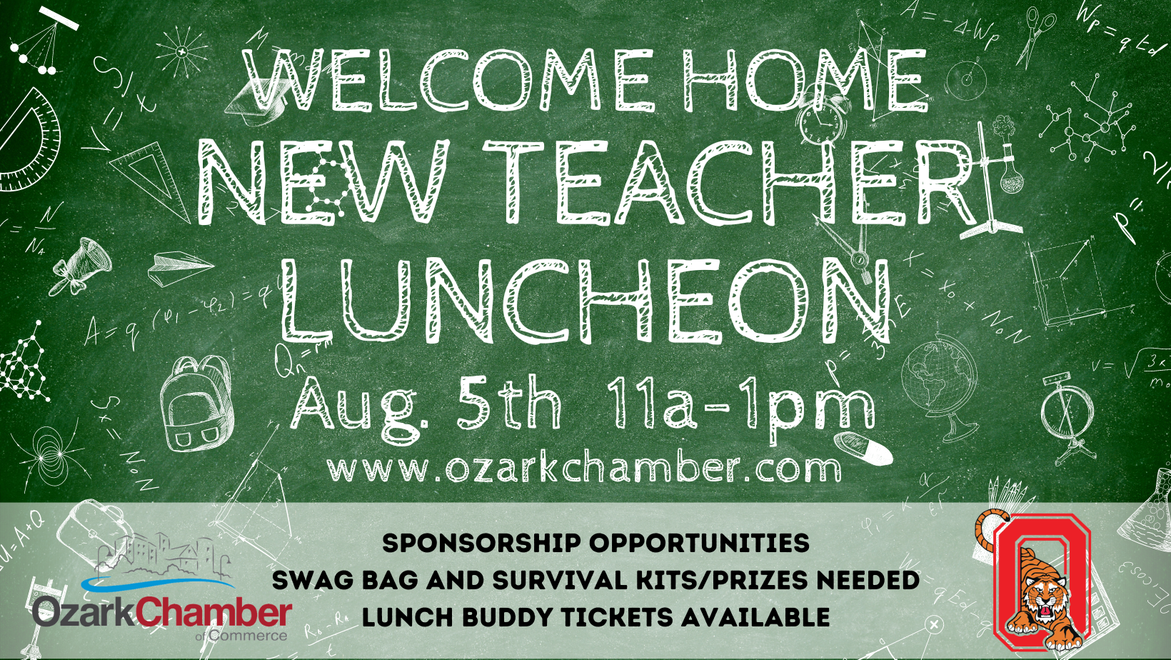 The Welcome Home New Teacher Luncheon is annual tradition for the Ozark Chamber and the Ozark Schools. Taking place during orientation on August 5th, 2024, this event gives businesses the opportunity to connect with Ozark's newest employees. The Ozark School District hires approximately 50-60 new teachers each year. Join us at the high school during Teacher Orientation as we roll out the red carpet for these key influencers!