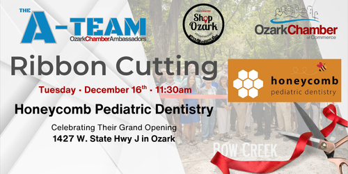 Join us in celebrating another new member to the Ozark Chamber of Commerce on December 16 at 11:30 am for a Chamber Ribbon Cutting at Honeycomb Pediatric Dentistry.