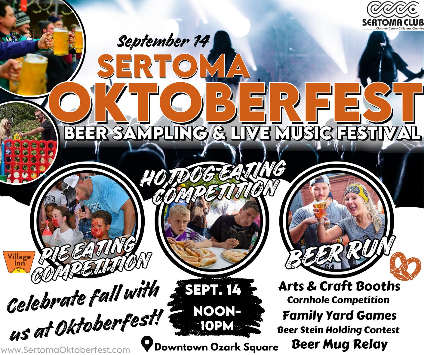Join us on the square in Ozark, MO, on September 14th for a fantastic fall celebration! Enjoy live bands, Brewery Tasting Experience from 1 p.m. to 4 p.m.craft beers, standard beer, delicious food, fish fry from 4 p.m. to 7 p. m.,craft vendors, beer mile and a cornhole tournament. There will also be family games, a pie-eating contest, a hotdog-eating contest, firefigher turnout race, and much more autumn fun!